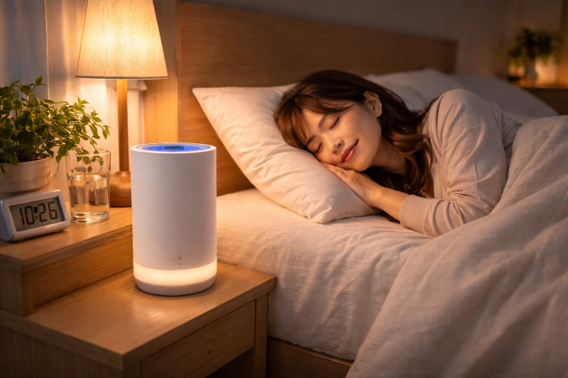 「空気をきれいにしながら、やさしく灯る」という点は、寝室向きモデルならではの魅力です。